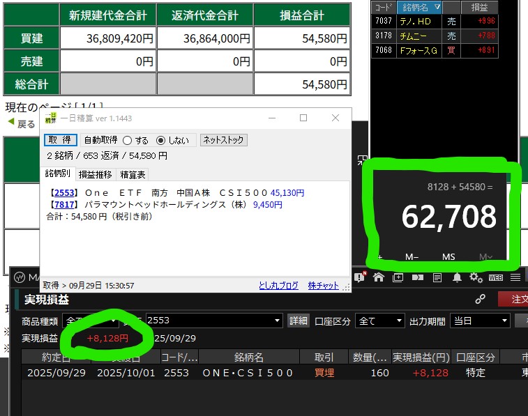 大引けで切るのも嫌だったので10分前切ってそれもちょっと損して
