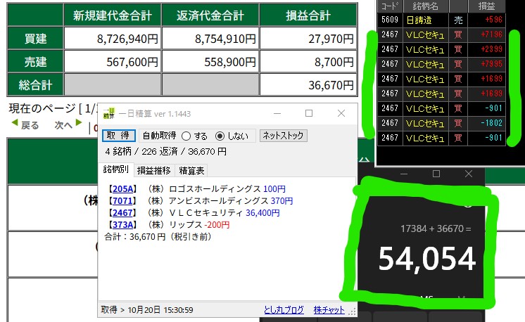 VLCセキュはゴチャゴチャですが全部松井と両建て分です(+17384