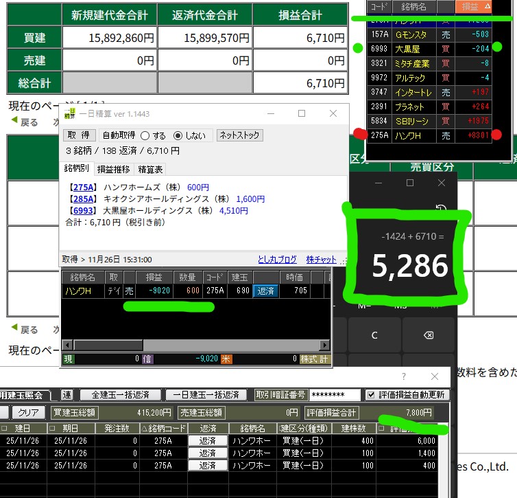 大黒屋は松井と両建て分です オマケは罰符合わせて+8000
