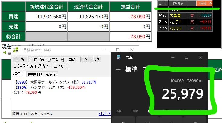 一番上のハンワは松井の現物と相殺で昨日計上済です