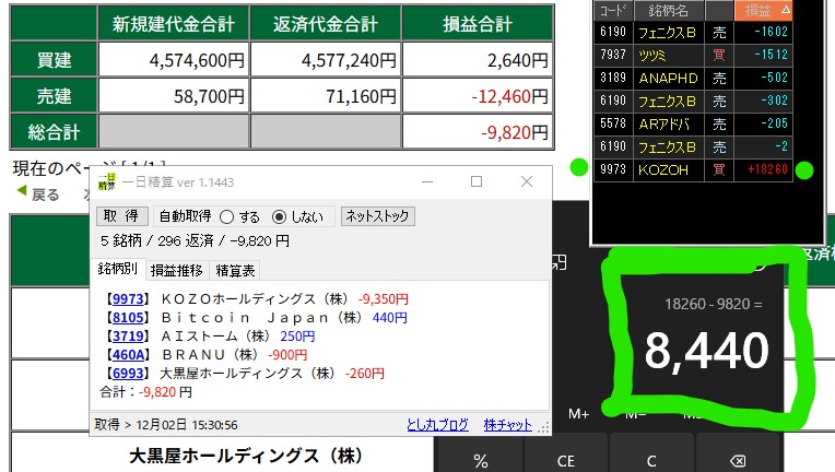 一番下のKOZOHは松井と両建て分です