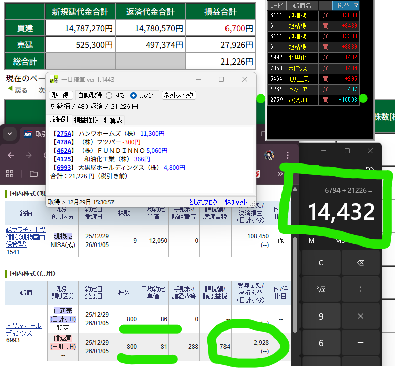 SBIの大黒屋も松井と両建て分です