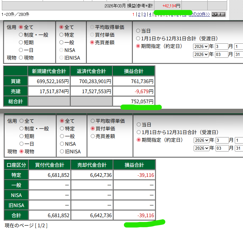 カブコムは受け渡し日ベースらしくてズレてるから本当に意味ないですw